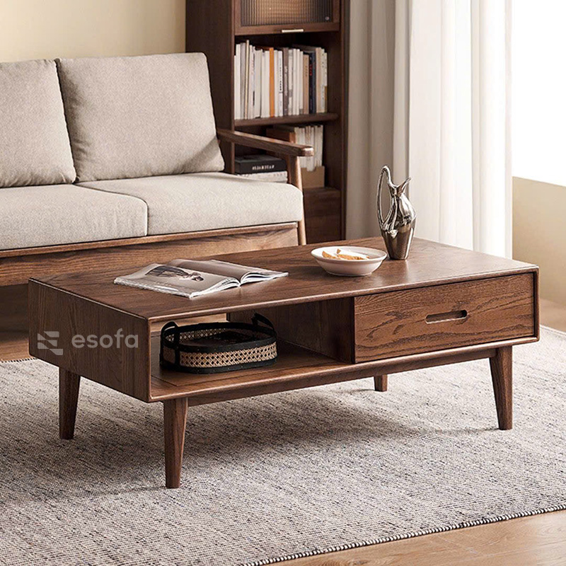 Bàn trà hộc kéo gỗ vân ngang sắc nét EB36