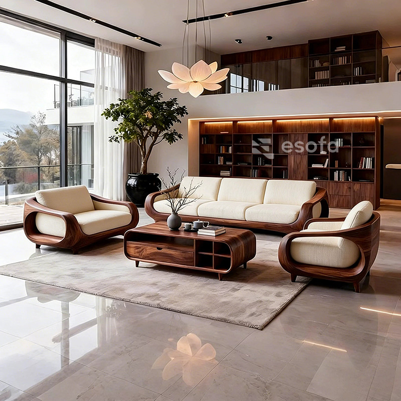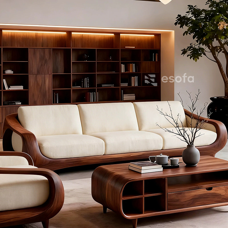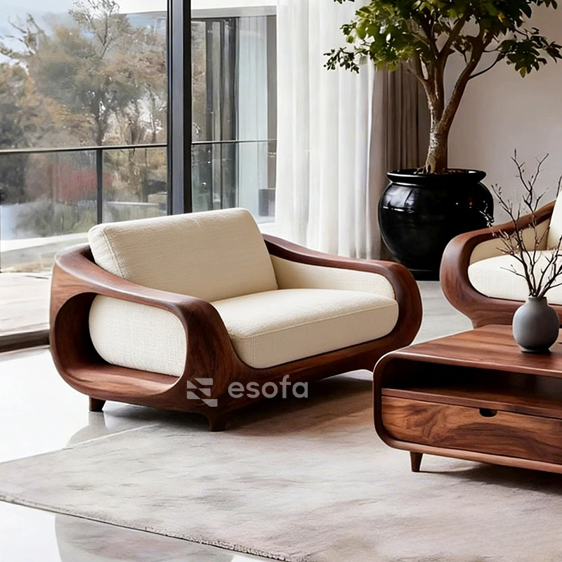 Sofa văng gỗ tự nhiên uốn lượn EH19